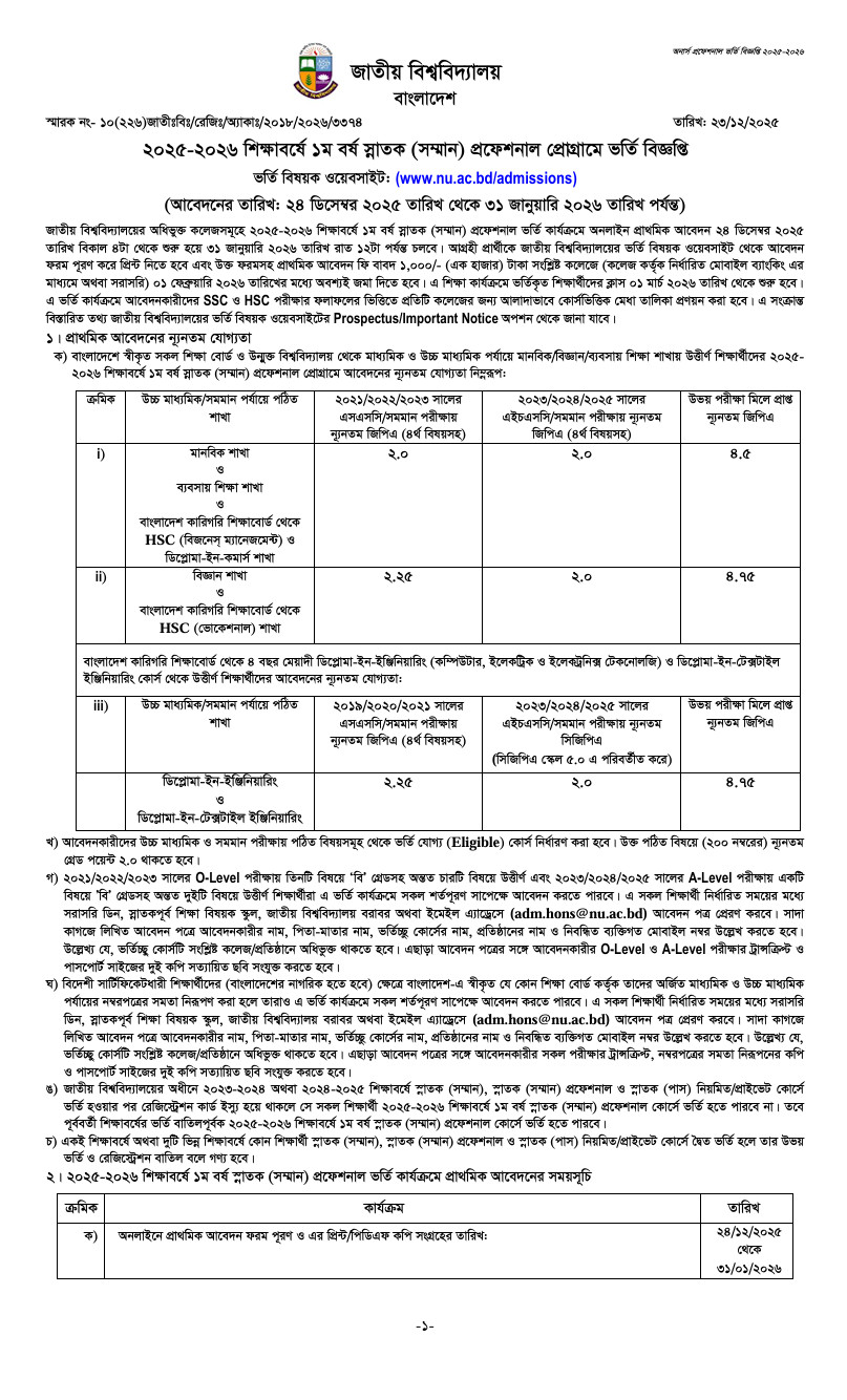 🎓 Honours (Professional) Admission 2025–26 Under National University at DIIT Chattogram